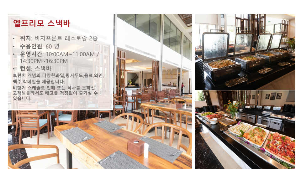 • ์๋ฆ๋ค์ด ํ๋ผ์ด๋น ๋ฐ์ด๋ค์ด ๋น์น ์์ ์์นํ ์ธ์์ฌ์ง์ ๊ฑด์ง์ ์๋ ์ธํผ๋ํฐํ์ ํฌํจํ 3๊ฐ์ ์์์ฅ๊ณผ ์ด๋ฅธ ์์ด ํจ๊ป ์ฆ๊ธธ ์ ์๋ 6๊ฐ์ ์ํฐ์ฌ๋ผ์ด๋๊ฐ ์๋ ์ํฐํํฌ ๋ฌด์ ํ ์