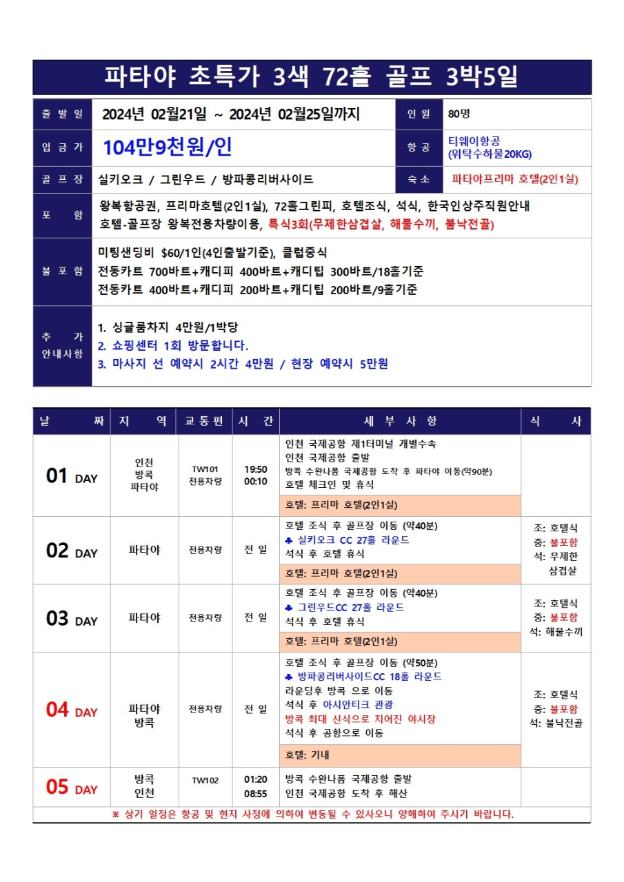 #파타야골프 #1인부터 #2월21일 #3박5일 #초특가행사