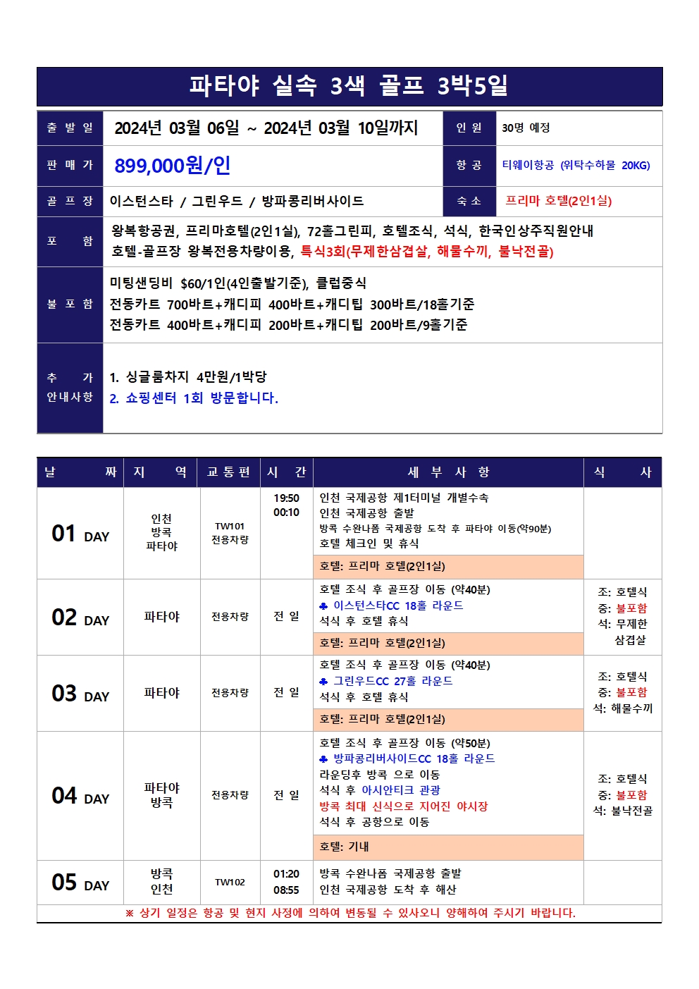 #파타야골프 #1인부터 #3박5일 #초특가행사 #3월6일