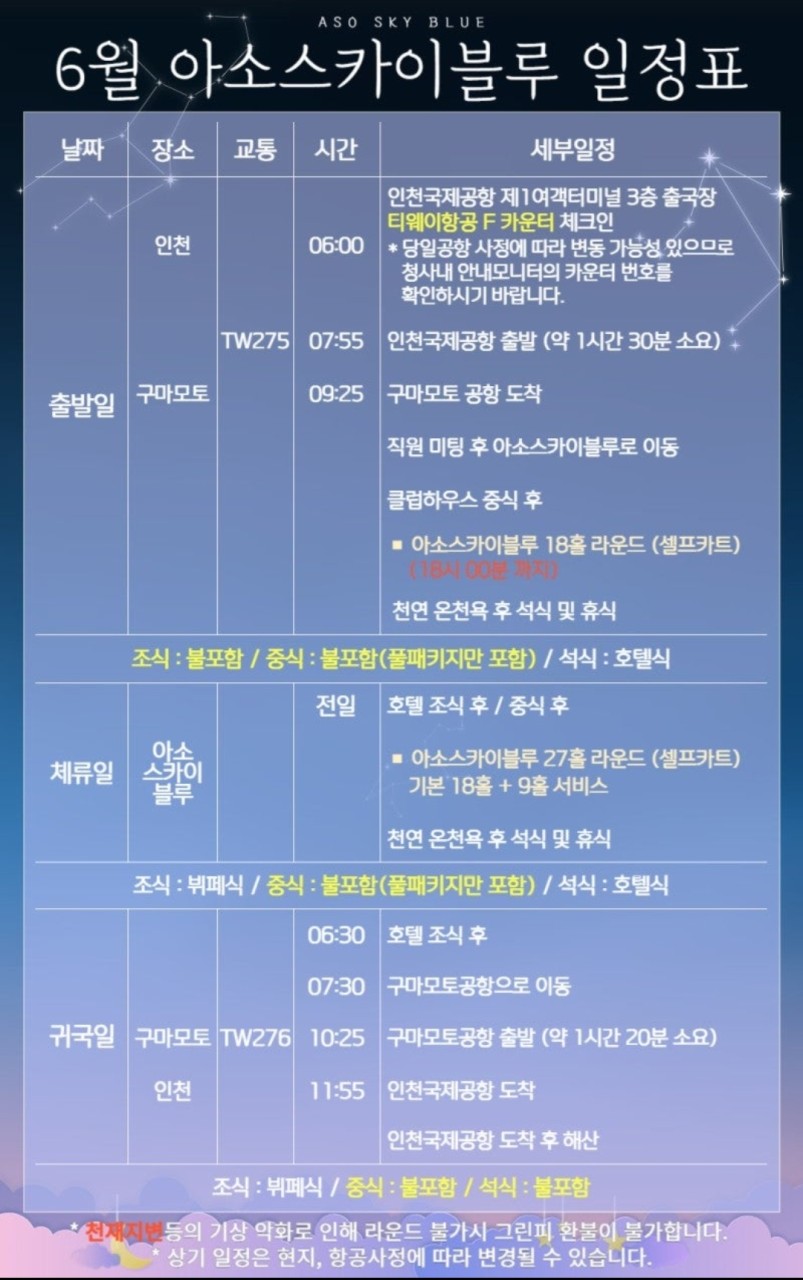 - ๊ณจํ (์ฒซ๋ 18ํ,์ฒด๋ฅ์ผ18ํ + 9ํ์๋น์ค,๊ท๊ตญ์ผ 0ํ)