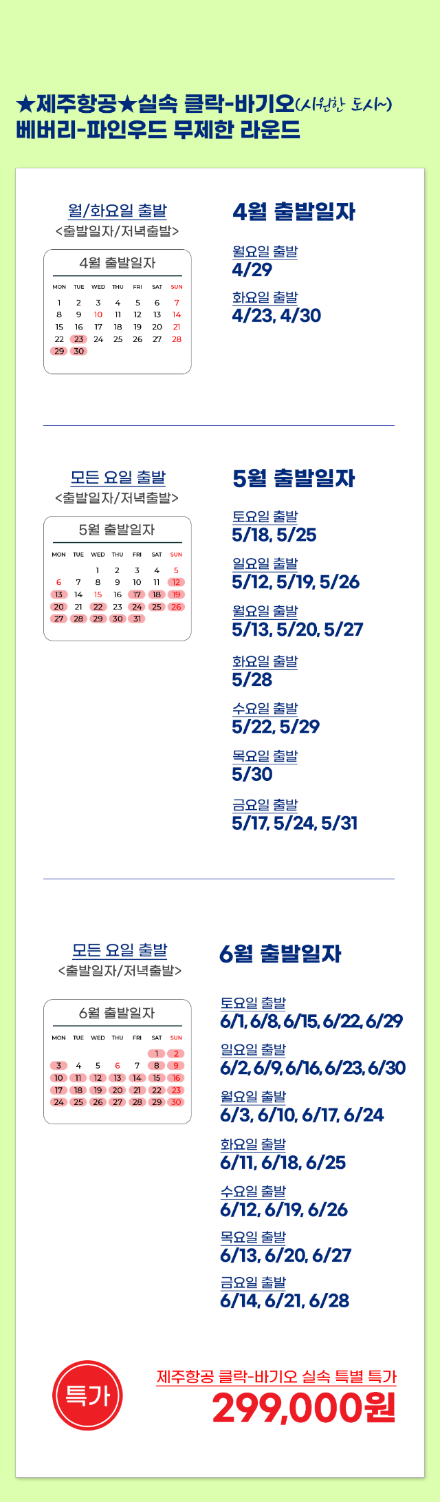 ★제주항공★인천출발 클락-쿨한도시 바기오 파인우드 무제한 라운드
