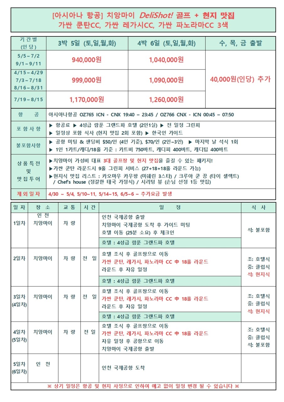 ๐ ์ถ๋ฐ์ผ : 4/17 ~ 9/11๊น์ง (3,4๋ฐ ํจํด ์ธ ์ถ๋ฐ ๊ฐ๋ฅ)