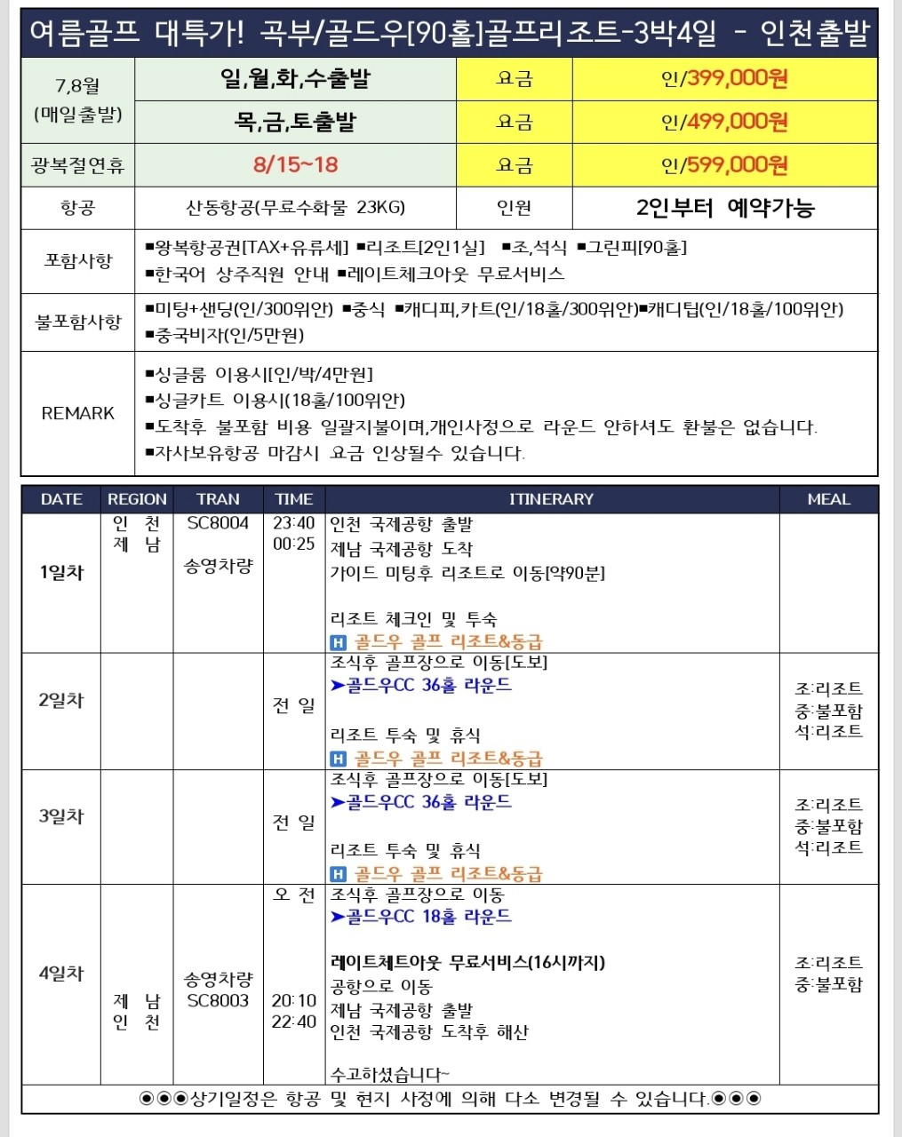 ๐ฃ์๊ธ : ์ผ,์,ํ,์ ์ถ๋ฐ ์ธ/399,000์