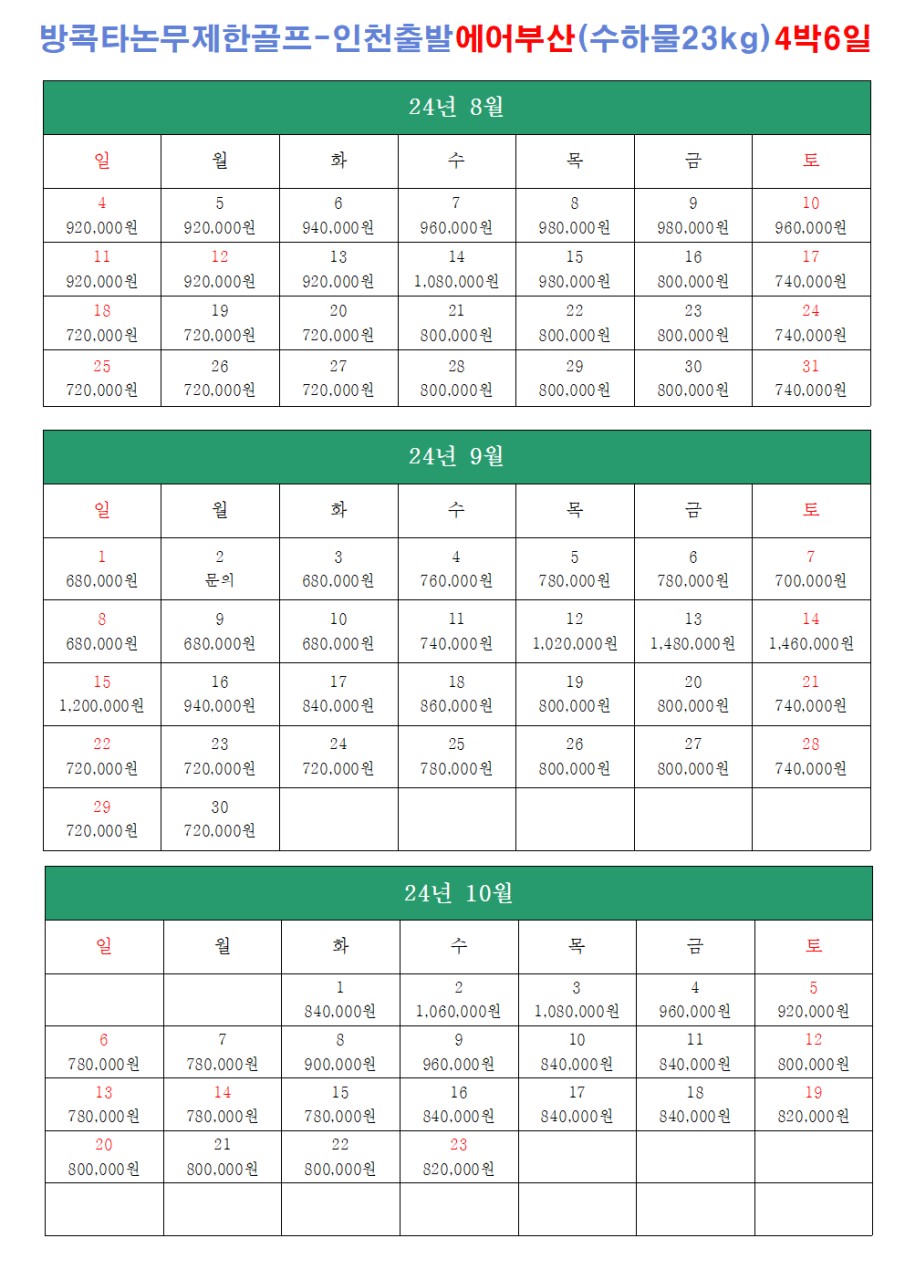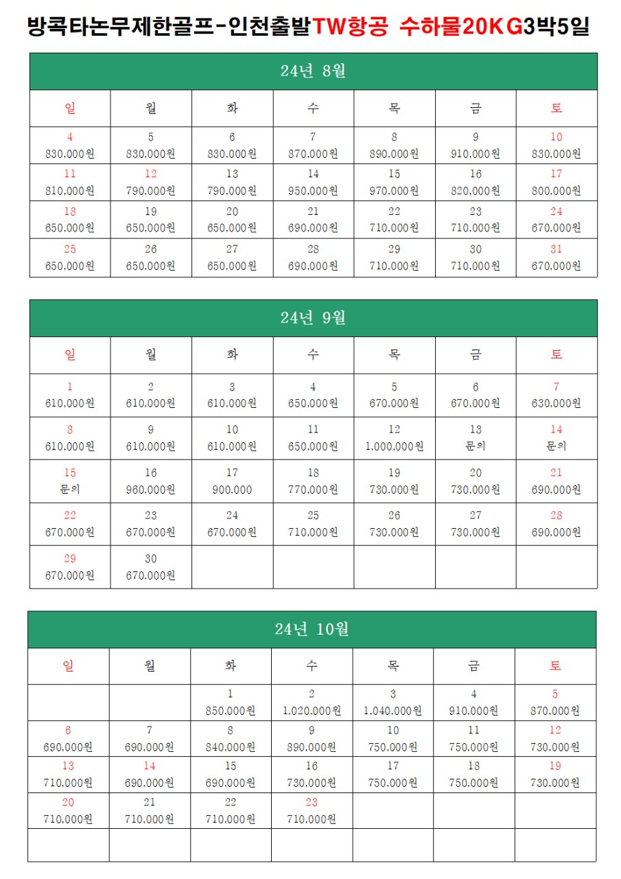 🗓 2024년 8월1일부터 인천/청주/부산/대구출발