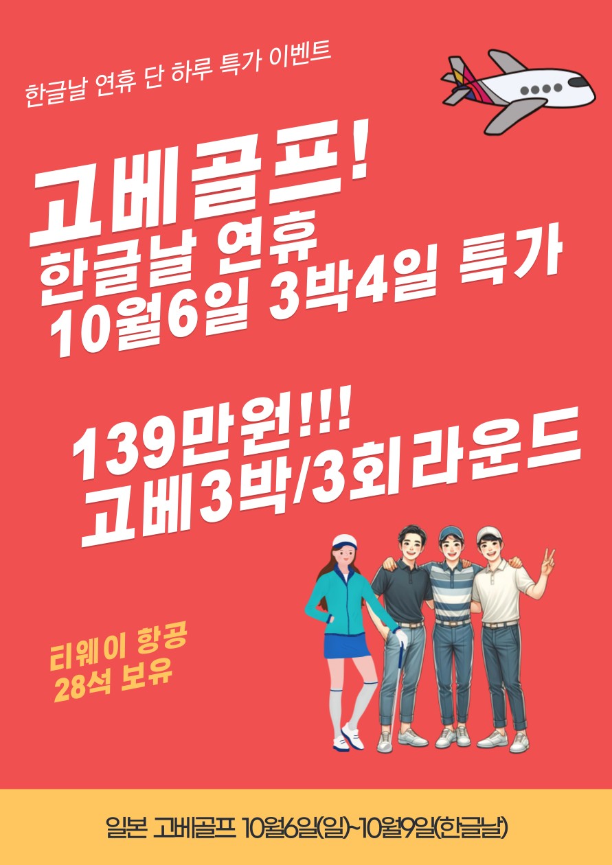 10월 6일 한글날 연휴 3박4일 특가 139만원~!!