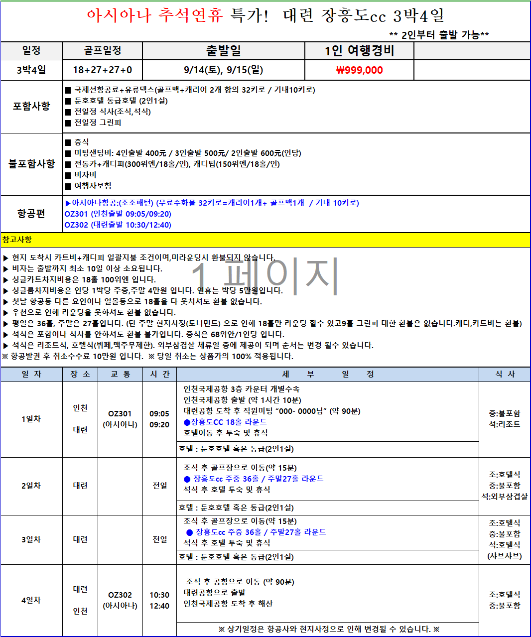 โถ9/14(ํ ), 9/15(์ผ) ์ถ๋ฐ ---> 999,000์