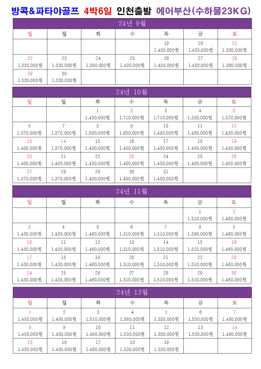 🗓 2024년 9월19일~12월19일- 4인부터출발