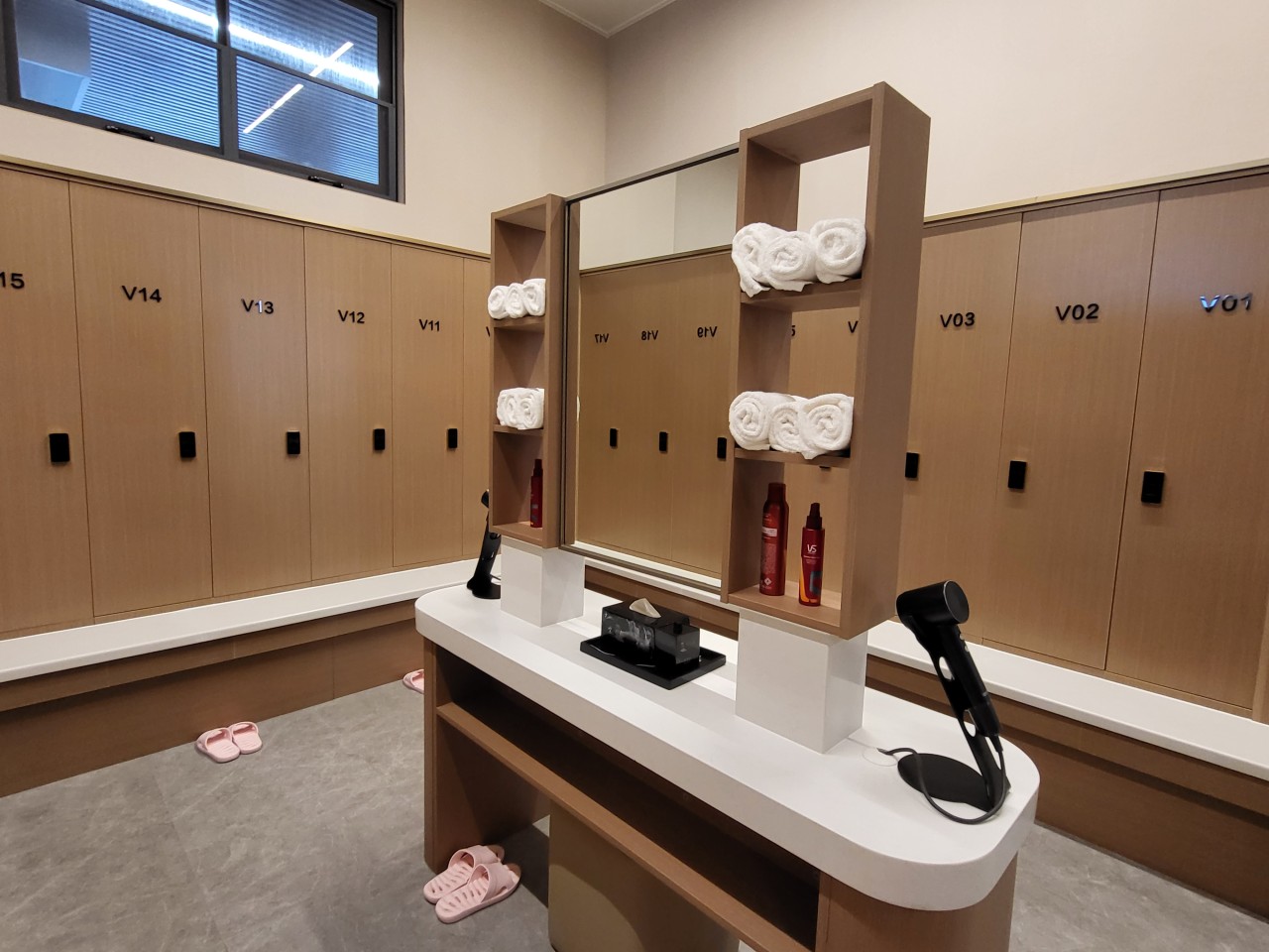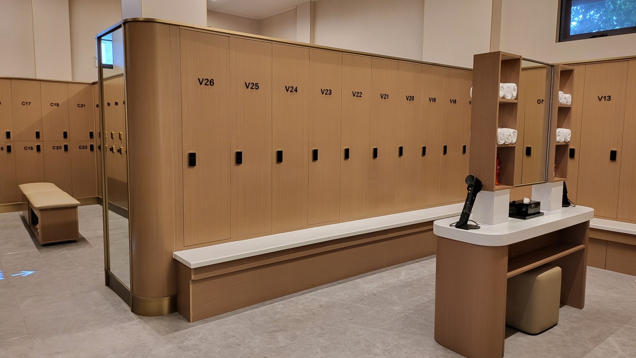 대~~박!!! 락커룸 너무 고급스럽고 깔끔하고 최고입니다. 수건도 소독기에서 소독되어 있고 드라기이기도 좋고 한국의 좋은 회원제 락커룸처럼 잘 되어 있습니다.
