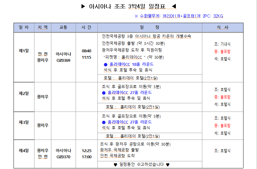 📆 홀리데이CC 3박4일 아시아나 항공팩