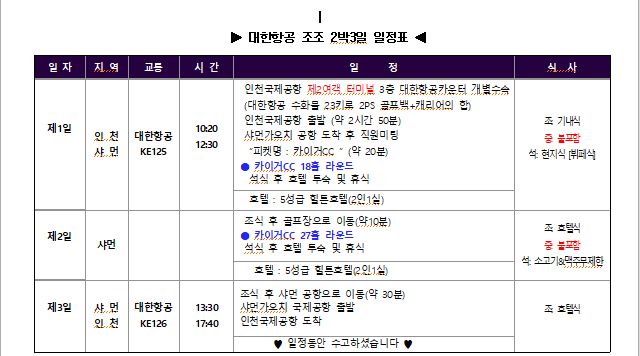 📆 카이거CC 2박3일(18+27+0)