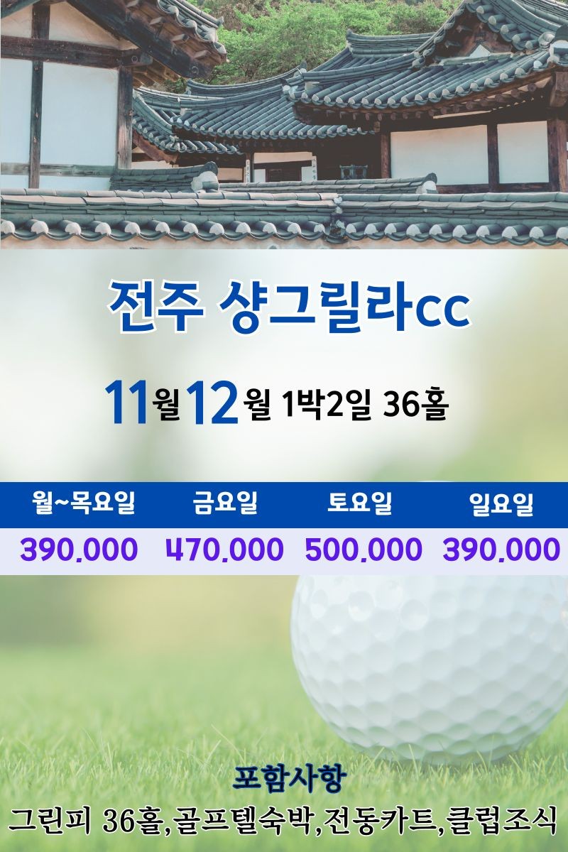 ⛳️11月12月⛳️❇ 전주🚩샹그릴라CC 🏨1박2일"골프텔" 패키지