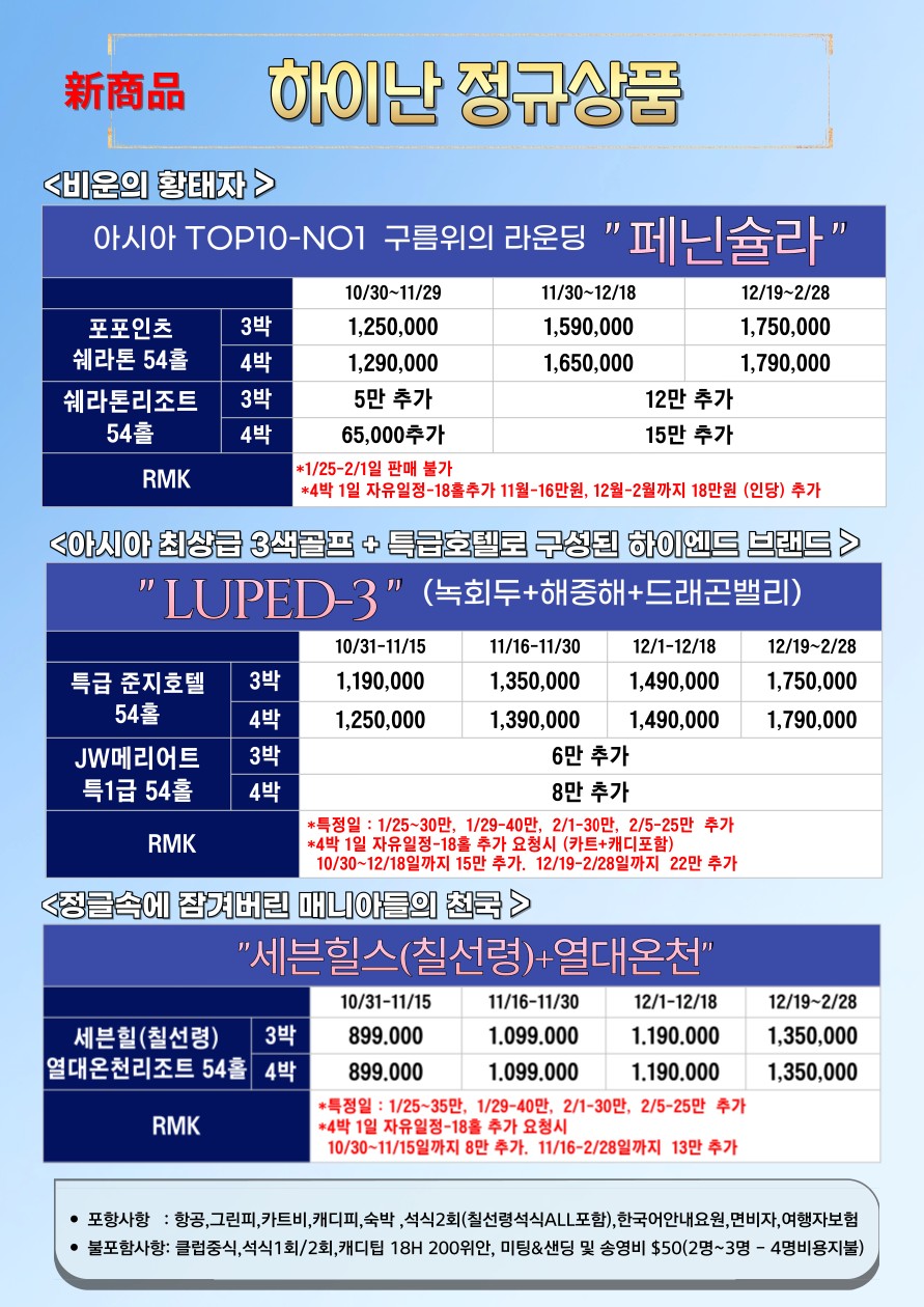 # 동계 최고의 골프투어 상품