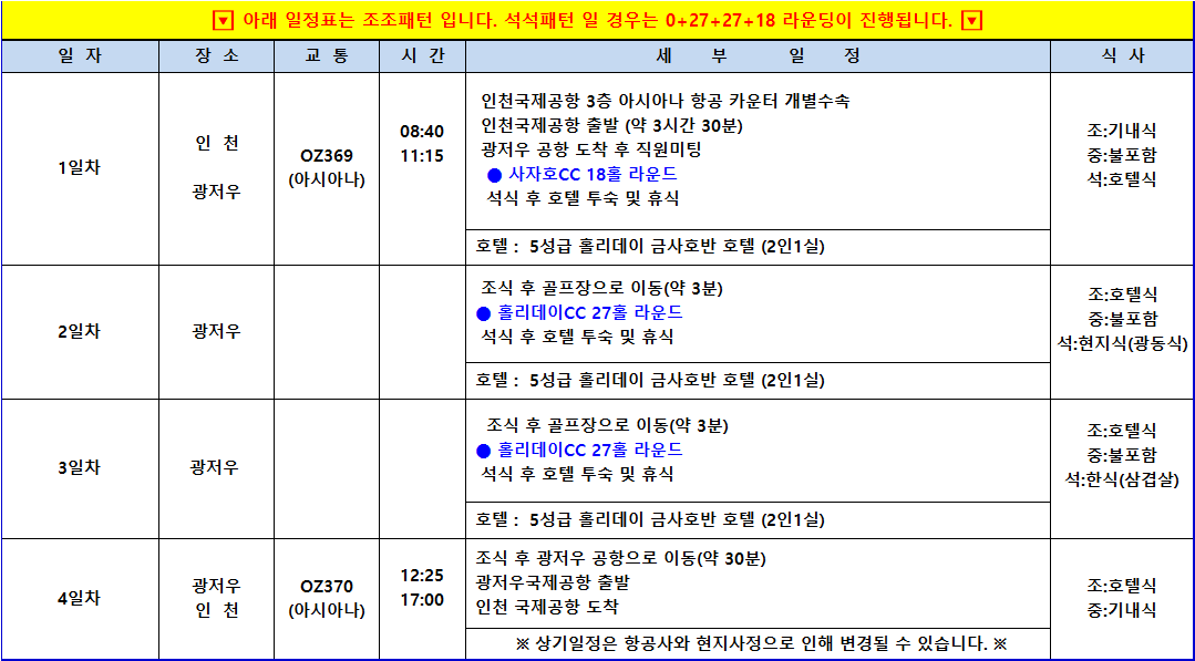 🌟 다양한 석식메뉴로 업그레이드 된 광저우 사자호cc+홀리데이cc 아시아나 항공팩 특가! 💗
