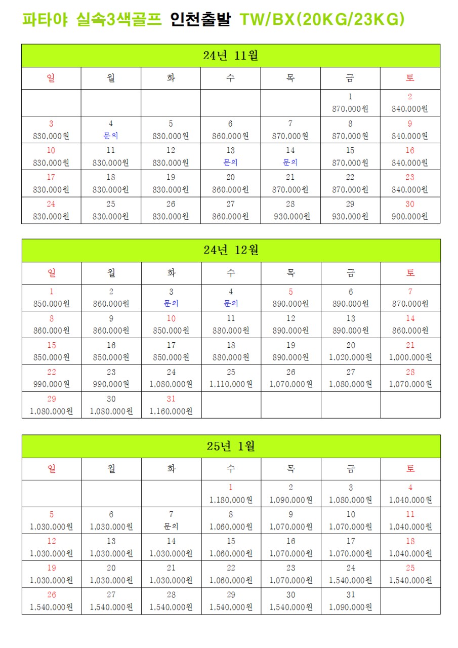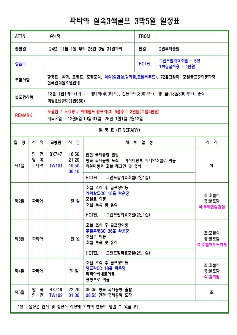 🗓 11월1일부터 인천/부산/대구/무안출발