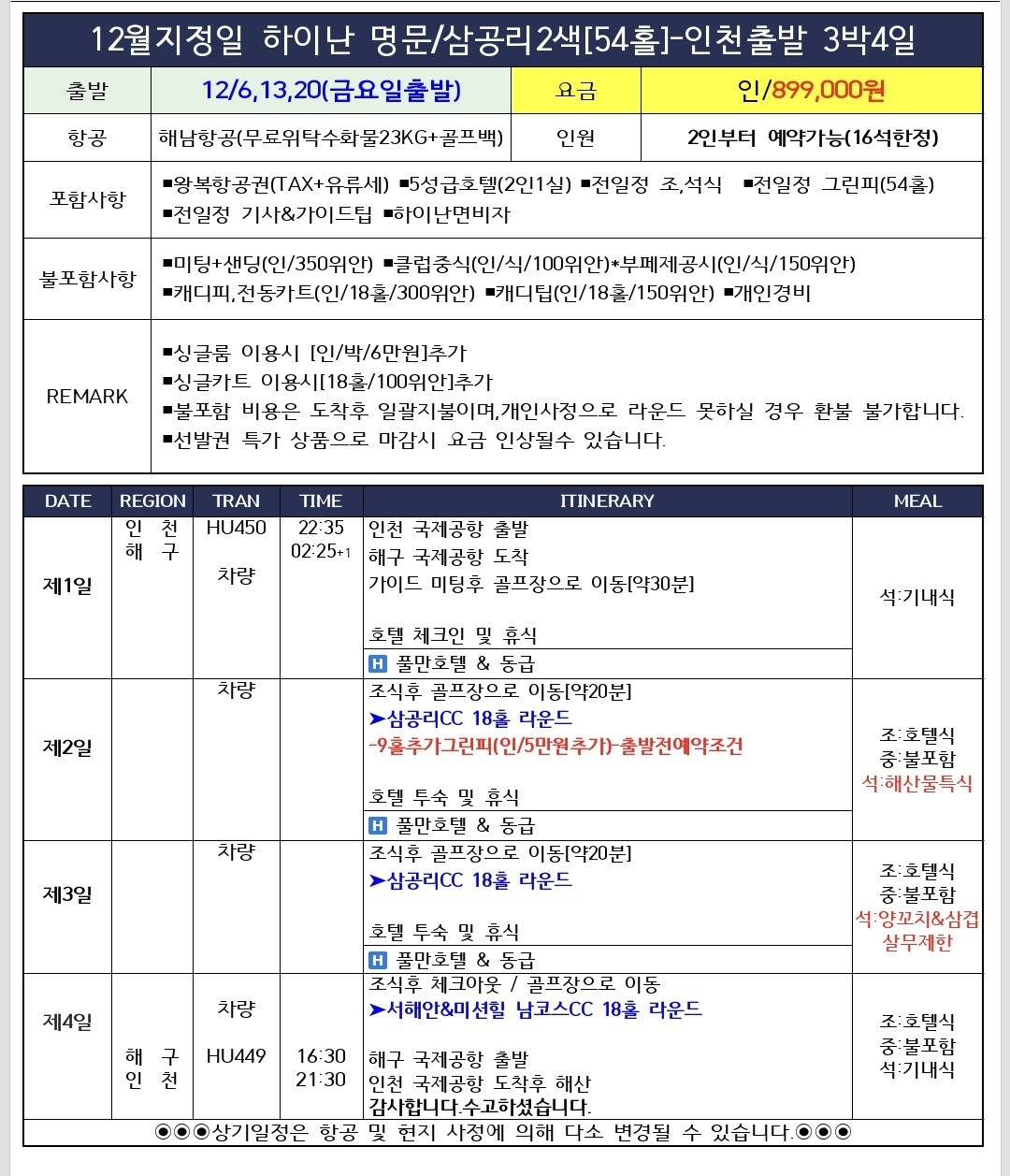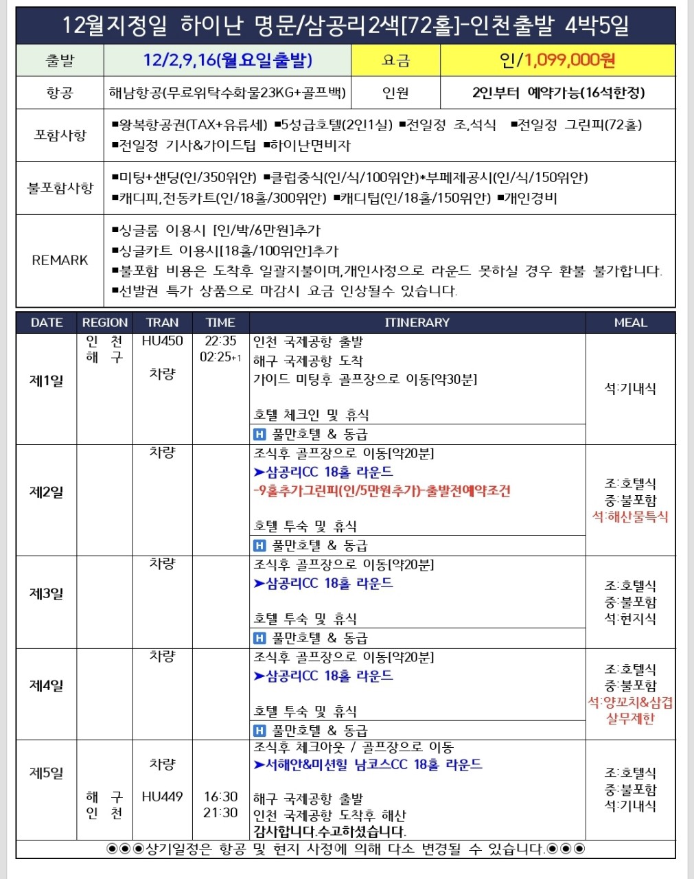 🔵항공:해남항공(무료수화물23KG+골프백)