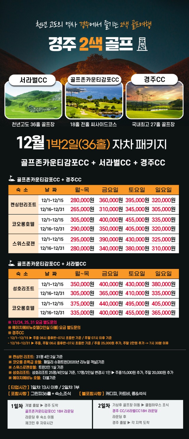 ๊ณ ๋ ๊ฒฝ์ฃผ๊ณจํ 1๋ฐ2์ผ ํจํค์ง(36H)