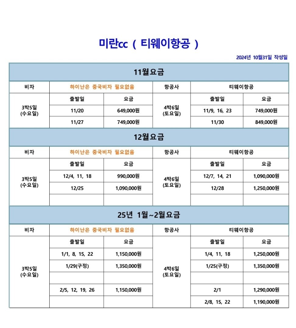 ํฐ์จ์ดํญ๊ณต : ๋งค์ฃผ ์,ํ ์ถ๋ฐ (์ฃผ2ํ)