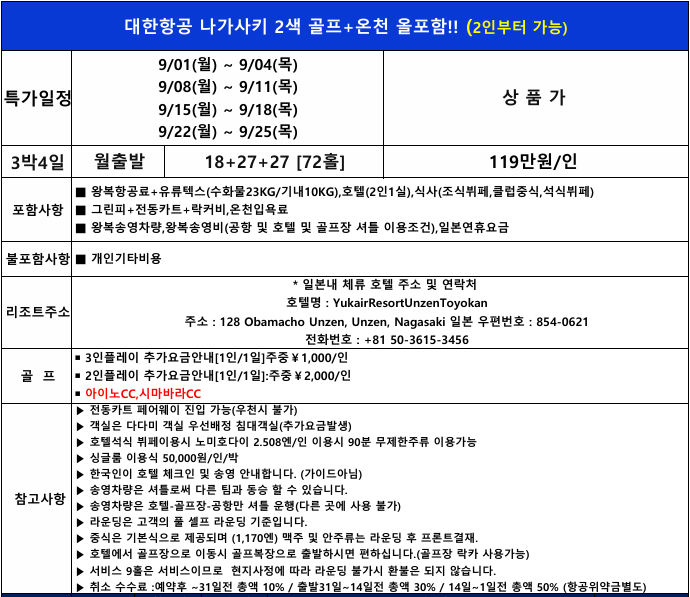 ✈️대한항공 나가사키 고품격 2색 골프 올포함!!✈️