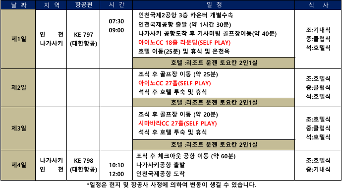 🏨3박4일:(월)출발 72홀 1,190,000원
