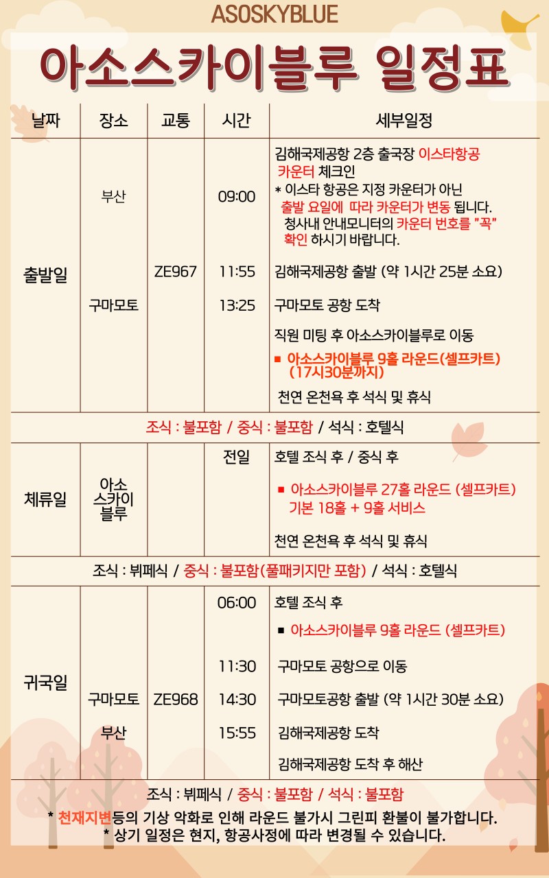 🏨호텔: 아소스카이블루 리조트(2인1실)
