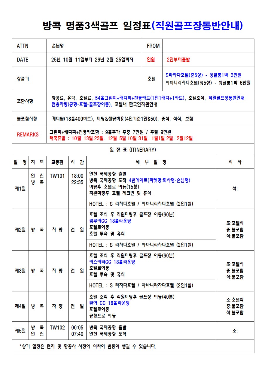✴️방콕명품3색골프 - 2인부터 단독출발(노쇼핑+노옵션상품)