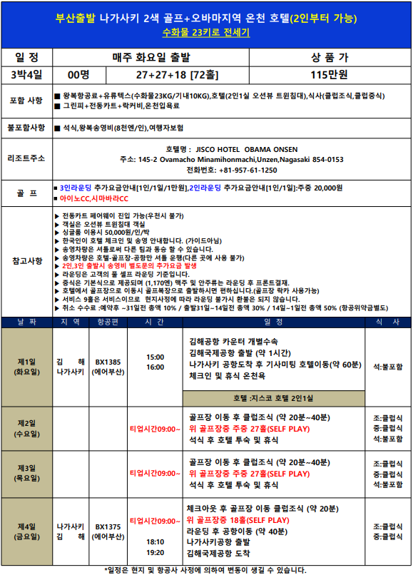๐จ3๋ฐ4์ผ:(ํ) ์ถ๋ฐ 72ํ 1,150,000์
