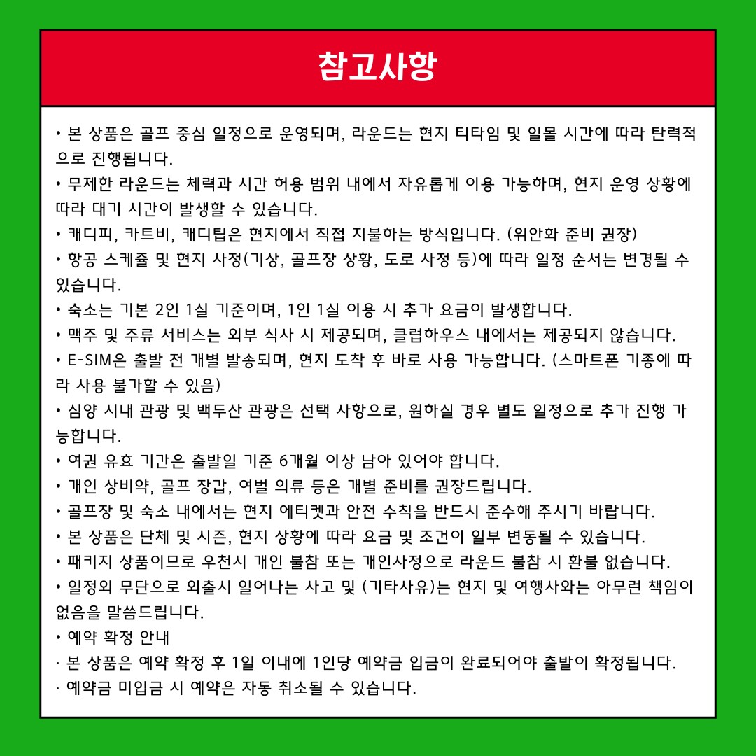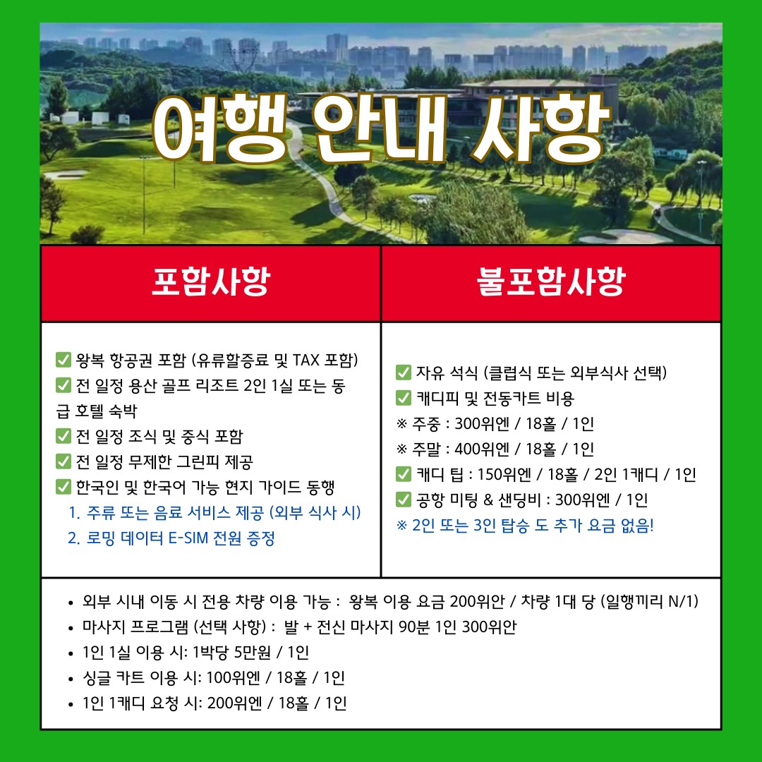 • 출발 당일 심양 도착 후 이동 및 라운드 가능