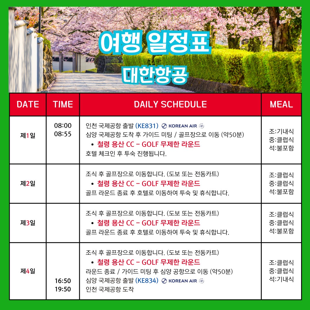 • 클럽하우스 식사 또는 철령·시내의 현지 맛집 중 고객 취향에 맞춰 선택 가능합니다.