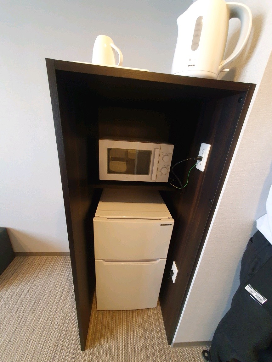 냉장고가 비치 되어있고 전자레인지도 비치 되어 있습니다.