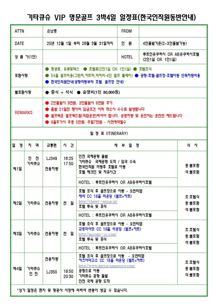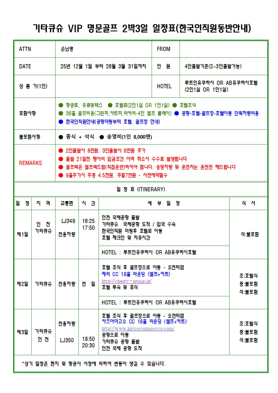 ✴️기타큐슈 명문2색/3색골프 일정✴️